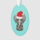 This adorable design features a small elephant with a Christmas theme. The baby elephant is wearing a large red and white Santa hat with its head tilted slightly to one side. The oversized head mixed with the details in the skin give the design a unique combination of a realistic and cartoon look. This adorable design is a unique and fun Christmas themed animal.