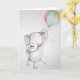 A perfectly customisable card with the cutest baby elephant ever ...Postage stamps with same subject also available. From my original painting watercolor on paper a cute baby elephant flying with his colourful balloon.