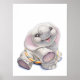 This adorable nursery print features a grey baby elephant sitting on the ground with a hula-hoop around his waist.