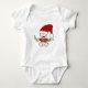 A baby dressed in a red stocking cap holds a string of holiday lights on tote bags, T-shirts, and other items that can be customised with baby's name or other text. Perfect for baby's first Christmas!