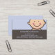 Personalised Baby Boy Business Cards Adorable baby boy themed business cards that are ready to personalise with your name, website and contact information and feature a cute cartoon baby face illustration with a blue and brown colour scheme. Use for your baby-themed business, craft site or hobby. Ready to personalise. Double sided, and the back can be customised.