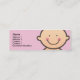 This cute skinny profile card is the perfect social accessory for you and your child! Its slim size easily tucks away in your diaper bag, kid's backpack or purse. Ideal for sharing your child's info when arranging play dates, sleepovers, or just making new friends. These cute cards feature a whimsical illustration of a baby's face in front of a pink background. And best of all, each profile card is fully customisable. Start personalising now!