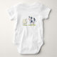 With one of Kate's fun farm animals, this cow body suit has a cow on the front and the wording 'Farmer in Training'. The back has a cow and sheep.
