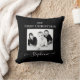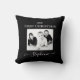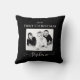 Baby First Christmas Elegant Modern Keepsake Photo Throw Pillow. First Christmas with baby only happens once. Make it special with this elegant customised photo keepsake on black ground with modern typography, and embellishment around personalised name and year. Add your favourite photo of baby. Contemporary design is ideal for black and white photo, and also works well with colour photography. Same design on front and back. Perfect gift for the family new parents or grandparents. >>TIP: When changing baby name, do not delete the two squares on either side of name, as they provide the swirl embellishments.<< Look in my store for matching personalised ornament and white throw pillow and other 1st xmas baby gift ideas for family. Step by Step Inspiration Series available exclusively on Zazzle at zazzle.com/store/KrisHarty, designed by international designer, Kris Harty. © 2021 Kris Harty Step By Step Inspiration
