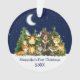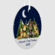 Baby's First Christmas Watercolor Woodland Animals Forest Animals Pine Trees Moon, Starry Sky and Snow Ornament . Baby Animals include Bear, Deer, Moose, Racoon, Bunny Rabbit, Fox and Owl with forest greenery. Add Name.