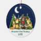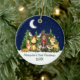 Baby's First Christmas Watercolor Woodland Animals Forest Animals Pine Trees Moon, Starry Sky and Snow Ceramic Ornament . Baby Animals include Bear with Red Bow, Deer, Moose, Racoon, Bunny Rabbit, Fox and Owl with forest greenery. Add Name.