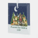 Baby's First Christmas Watercolor Woodland Animals Forest Animals Pine Trees Moon, Starry Sky and Snow Glass Ornament . Baby Animals include Bear with Red Bow, Deer, Moose, Racoon, Bunny Rabbit, Fox and Owl with forest greenery. Add Name. Green Text.
