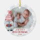 A cute, whimsical watercolor gnome accents your baby's photo titled with NAME'S FIRST CHRISTMAS with a winter blue snowflake background and personalised with name and year on the front and a photo on the back. PHOTO TIP: For fastest/best results, choose a photo with the subject in the middle and/or pre-crop it to a square shape BEFORE uploading. Contact the designer via Zazzle Chat or makeitaboutyoustore@gmail.com if you'd like this design modified or help transferring it to another ornament style or other product.