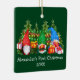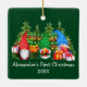 Baby First Christmas Lights Gnomes Green Square Ceramic Ornament