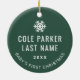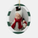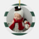 Baby First Christmas Modern Green Stripes Photo Ceramic Ornament