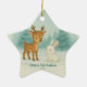 Personalised Baby’s First Christmas Ornament, Custom Newborn Keepsake Gift, Baby Boy or Girl Gift, Baby Girl Ornament. Featuring a woodland illustration with a cute reindeer and snow bunny. Use the design tools to customise the text, font and photo.