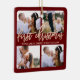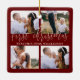 Baby First Christmas Red Gold Script Four Photo Ceramic Ornament