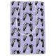 Ink smudged newborn baby footprints on purple and white polka dot pattern.