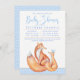 Fox baby shower invitations with adorable watercolor mother and baby boy fox wearing a cute blue crown on a baby blue dot background. These sweet fox baby shower invitations are easily customised for your event by simply adding your details. You can also change the background colour and remove the crown from the baby fox.