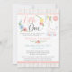 Baby Giraffe First Birthday Floral & Rustic Wood Invitation