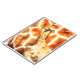 A painting of a baby giraffe up-against it's parent's belly. It has a lot of growing to do to catch up to the size of it's mum and dad.