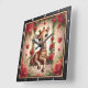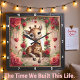This enchanting square wall clock features a heartwarming digital illustration of a sweet baby giraffe resting comfortably on an ornate garden swing. The giraffe has large, expressive brown eyes and is surrounded by a lush frame of deep red roses and green foliage. Delicate golden chains with hanging quilted heart charms accent the scene, while a soft, glowing background creates a dreamlike, romantic atmosphere. The artwork is set within a modern black wood-grain frame with bold white numeric markers for easy readability. This functional home accessory is a perfect decorative piece for nurseries or as a thoughtful gift for animal lovers on Valentine Day. Its high-detail composition and warm floral theme provide a sophisticated and loving focal point for any interior space.