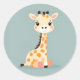 The sticker features an adorable baby giraffe, capturing the endearing charm of this beloved animal. With its long, slender neck and spindly legs, the giraffe exudes a sense of innocence and curiosity. Its fur, soft shades of tan and brown, has subtle spots or patches that add to its charm. Large, expressive eyes gaze out with wonder and curiosity, while a small tuft of hair adorns the top of its head. Despite its diminutive size, the baby giraffe stands tall and proud, ready to explore the world around it. This sticker is perfect for adding a touch of whimsy and sweetness to any surface or decoration.