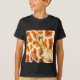 A painting of a baby giraffe up-against it's parent's belly. It has a lot of growing to do to catch up to the size of it's mum and dad.