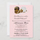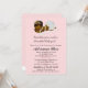 Adorable baby girl Baptism/Christening Invitation. Pink damask with cross. DARK BROWN complexion/skin baby with BROWN hair. Dressed in a gold tiara, white bloomer/tutu and adorned with a pearl necklace. Design #182. Perfect invitation for your special baby girl's baptism/christening.