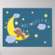 Baby Girl Bear Moon Celestial Stars Nursery Print