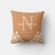 This cute nursery pillow features a muted orange background with accents of light orange and white and is perfect for your newborn baby girl. The design offers custom text for a monogram, name and birth stats and is accented with white daisy flowers.