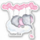 Personalised vinyl sticker with cute little elephant design. This watercolor illustration has an adorable baby girl elephant with pink ears and pink toes. She is chilling out on a fluffy white cloud with pink love heart shaped balloons. The template is set up ready for you to personalise with your name (or you can leave the box blank if custom text is not required). Uber cute removable, waterproof vinyl stickers for your water bottles, nursery decor, toys and journals etc.