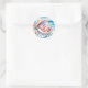 Girl's Baby Shower stickers. Sweet soft pastel pink and blue coastal seaside baby shower theme. A little baby girl sleeping inside a while and gold seashell. Pretty blue ocean water with whimsical watercolor tropical flowers.