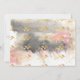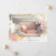 Modern painted gold, grey and pink baby girl birth announcement. Modern and simple design with abstract painting in gold, pink and grey. Insert photo of your baby girl and customise name and stats on front. Photo has a thin line, two hearts and gold leaf around it. Coordinating backside with same artwork and gold leaves. Design by Jenn's Emporium.