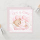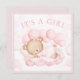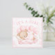 Baby Girl Pink Bear Announcement Card. The soft pastel pink, ivory and beige colours with a cute sleeping baby bear girl on the clouds with the balloons is just so adorable for a baby girl announcement. Easily personalise the text. Matching items for baby shower and baby items are available in my store. Kate Eden Art