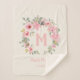 Cute and girly pastel pink watercolor floral and sage green leaves wreath monogram baby girl sherpa blanket. Personalise with your child's initial, name, and birth date. Perfect new baby gift.