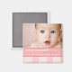 Introduce your sweet little girl to family and friends with this modern and fun photo magnet in pink and white. It's easily customised with your baby photo, name and birth details.