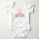 A personalised baby body suit with a pink rose