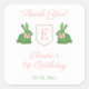 Baby Girl Preppy Bunny Monogram Thank You Favour Square Sticker