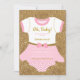 Super cute! A Baby Shower invitation featuring a baby bodysuit / sleeper / one piece / pajama to welcome a baby girl or two (Perfect for a twin shower, just adjust the wording to "suit" your needs!) an adorable tutu and bow and a gorgeous gold crown.