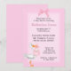 Cute stork holding a pink bundle. Pink dot background and pink bow. The perfect baby girl invite for mum to be. Customise with your shower details. delightfuldoodles.