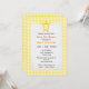 Cute duckling for baby girl shower on yellow and while gingham pattern background.