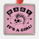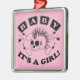 Cute pink skull and crossbones with Mohawk and BABY - IT'S A GIRL! text.