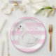 Baby Girl Swan Girly Pink Script Baby Shower Paper Plate