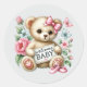 Baby girl welcome bear classic round sticker