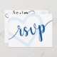 Modern cobalt princess blue and white baby flourish calligraphy heart shower or gender reveal party RSVP response postcard featuring a fun, casual hand-lettered script with heart. The classic design includes a modern handlettered quote typography overlay. For other colours or matching products, please visit the JustFharryn Zazzle store, or contact the designer, c/o Fharryn@yahoo.com All rights reserved. #bohochic #zazzlemade