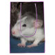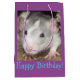Make Birthday present wrapping easy with this gift bag featuring the text 'Happy Birthday!' and a cute baby Husky Dumbo rat, photography copyright Mindgoop All profits help High Peak Rat Rescue to rescue and care for rats in the Peak District, England.
