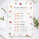 Baby in Bloom Baby Shower Baby Traits Game Card