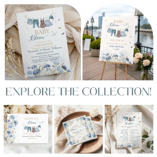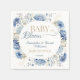 These “Baby in Bloom” napkins were inspired by a soft wildflower meadow in early spring. Delicate blue blossoms and airy botanical details frame the elegant lettering, creating a fresh and graceful look that brings a beautiful garden touch to your baby shower table.