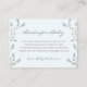 Baby in Bloom boy book request cards feature delicate branches with tiny blue buds. The floral pattern on the back can be removed. See collection for other variations.