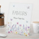 Display this sign at your baby shower favors table. The cheerful palette of blooming wildflowers and graceful butterflies is perfect for a butterfly baby shower theme, wildflower baby shower, baby in bloom shower, garden party baby shower, or spring and summer baby shower celebration, while the hand-painted details add a light, storybook charm.