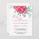 This pretty baby shower invitation features watercolor roses and flowers in shades of pink and purple with eucalyptus and other foliage,