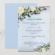 Celebrate the upcoming arrival with this Baby in Bloom flat baby shower invitation featuring soft blue gradients and delicate white‑green florals. The centered layout keeps all event details clear and easy to read, while the gentle botanical frame adds a fresh, modern touch. Perfect for spring and summer baby showers, gender‑neutral themes, or floral‑inspired celebrations. Fully customizable with your own wording, colors, and event information