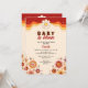 Baby In Bloom Groovy Retro Hippie Flowers Baby Shower Invitations Invites features a groovy hippie floral background in red, orange, yellow and white with the text "Baby in bloom" in modern typography script. Send in the mail or simply download the shareable downloadable digital invitation e-invite. Designed by Evco Studio. For coordinating items view www.zazzle.com/store/evcostudio