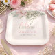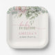 Baby in Bloom Pink Floral Baby Girl Shower Paper Plates. Celebrate the arrival of your little one with these charming "Baby in Bloom" paper plates, perfect for a baby girl's shower. Adorned with a beautiful watercolor floral arrangement in soft blush pinks and lush botanical greenery, these plates set a sweet and elegant tone for your celebration. The "Baby in Bloom" theme is beautifully complemented by the option to add a custom name, making the mom-to-be's special day even more memorable. They are ideal for serving cake, snacks, or appetizers, adding a touch of natural beauty and whimsical charm to your party décor. Make your baby girl's shower unforgettable with these delightful chic floral eucalyptus plates.